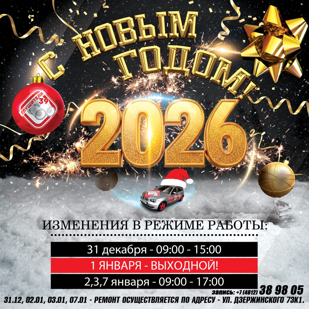 Дорогие Наши Друзья, от компании «Глушители 39» спешим Вас поздравить с Наступающим Новым Годом и Рождеством!
